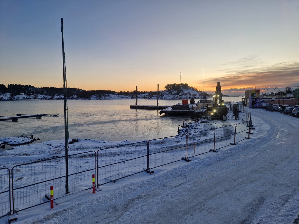 Rivingen er godt i gang og den gamle båtbutikken er borte. Her blir det en helt fantastisk beliggenhet når de nye byggene kommer på plass.